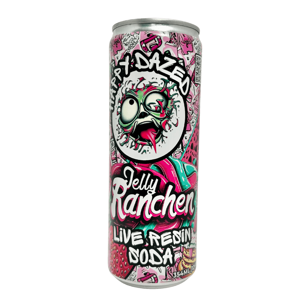 Happy Dazed Live Resin Soda – Jelly Rancher (Sleeve of 12) 15MG THC/CBD/CBG – 1/2 Case