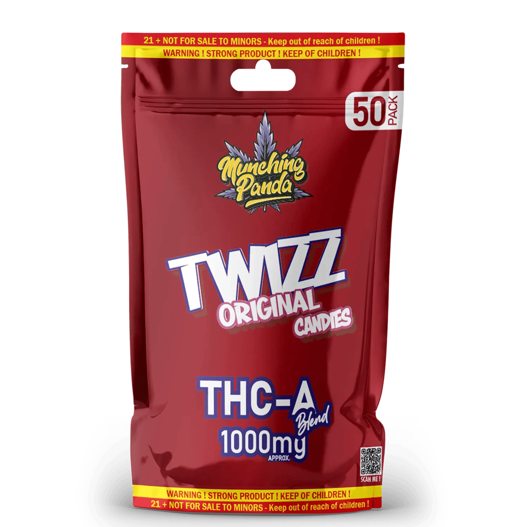 Munching Panda 1000mg Mighty Gummies – Cherry Twizz Original (Sleeve of 6) 50ct Bags