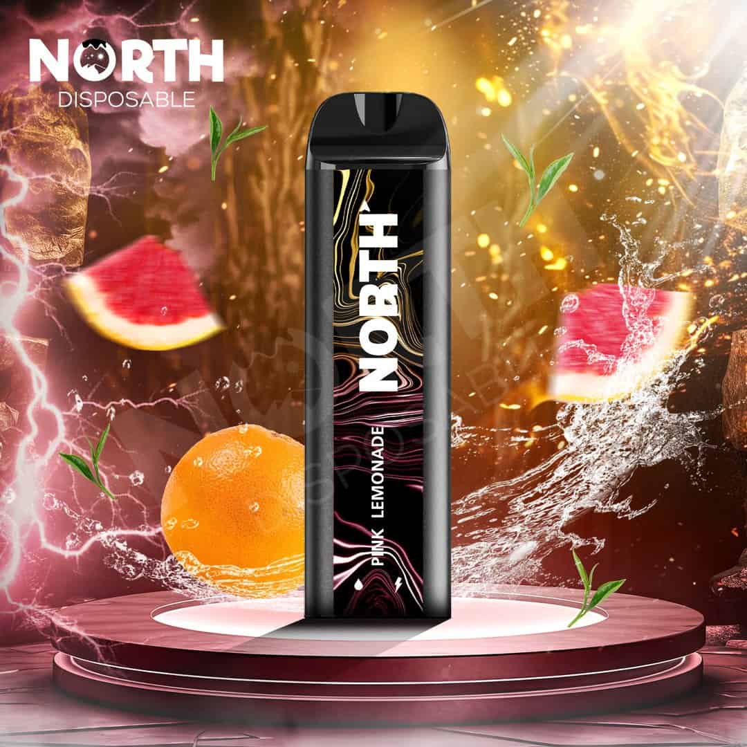 The North Disposable device comes prefilled with 10ml of e-liquid which provides up to 5000 puffs and has a battery capacity of 550 mAh for a long-lasting vaping experience. It features a premium mesh coil and an indicator for both e-liquid capacity and battery life. Additionally, it includes overcharge protection for added safety.