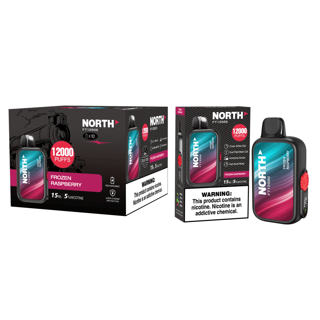 North FT12000 15ML 12000 Puffs Nicotine Vape – Frozen Raspberry (Sleeve of 10)