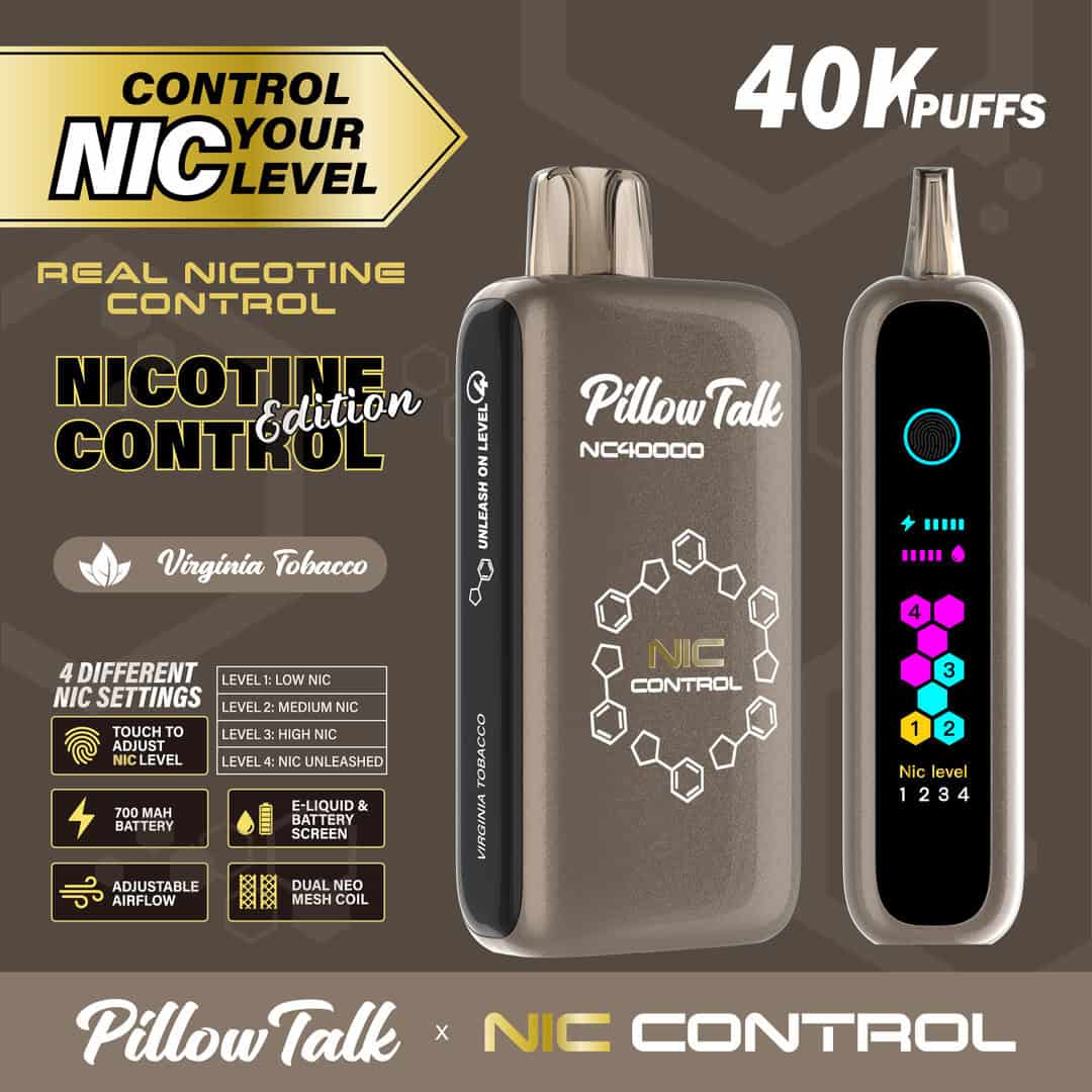 Pillow Talk Nic Control NC40000 Puffs 20ML Disposable- Virginia Tobacco (Sleeve of 10)